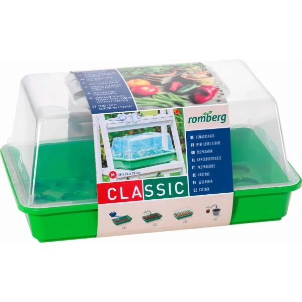 Deze mini broeikas van Romberg past perfect op de vensterbank en is onmisbaar bij het opkweken van zaailingen. Gemaakt uit stevige kunststof en voorzien van ventilatie.