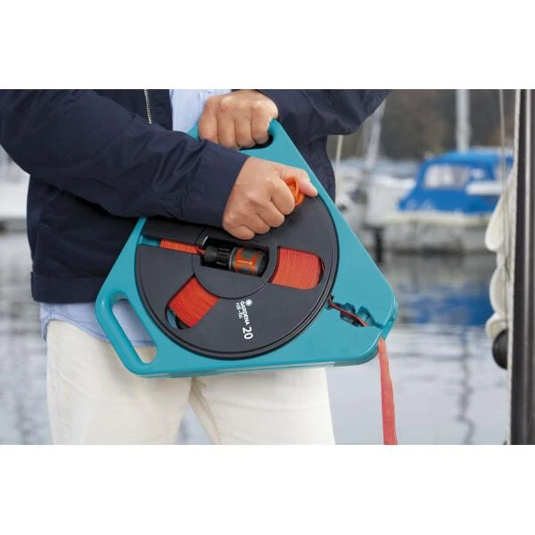 Door het geringe gewicht en de compacte vorm is de GARDENA Classic roll-fix in cassette ideaal om te vervoeren. De platte waterslang kan worden uitgerold tot 20 meter.