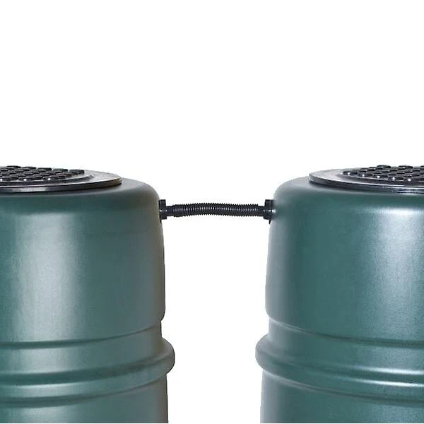 Met dit eenvoudig systeem verbind je met gemak twee regentonnen zodat de ene ton in de andere overloopt als ze vol is (verbinding bovenaan).