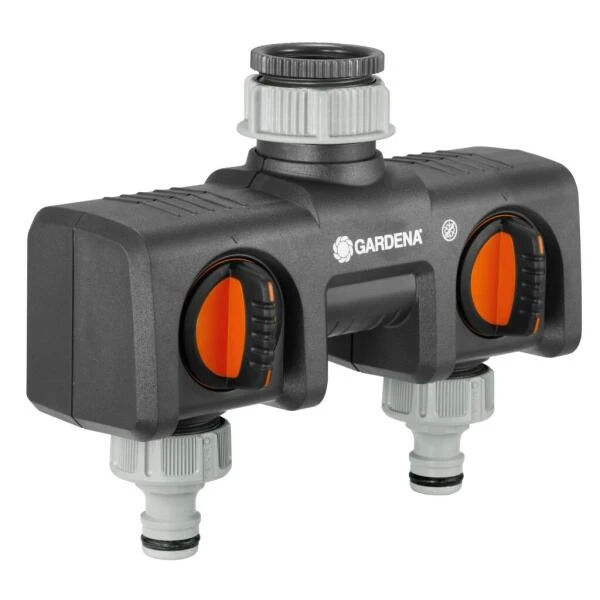Met de GARDENA 2-weg-waterverdeler sluit je gelijktijdig twee accessoires aan op één kraan. De uitgangen zijn traploos regelbaar. Op de verdeler kunnen bijvoorbeeld twee GARDENA besproeiingscomputers of watertimers worden aangesloten.